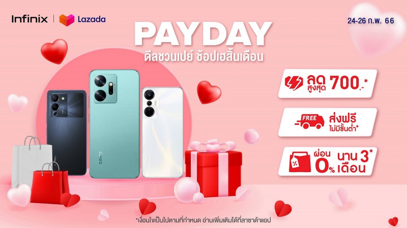 2.เมื่อซื้อสินค้าบน LAZADA ระหว่างวันที่ 24 – 26 กุมภาพันธ์ 2566 รับส่วนลดสูงสุด 700* บาท พร้อมบริการจัดส่งฟรี และรับข้อเสนอสุดพิเศษ ผ่อน 0% นาน 3 เดือน อาทิ